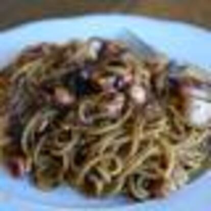 ESPAGUETIS CON PULPO Y AJO NEGRO