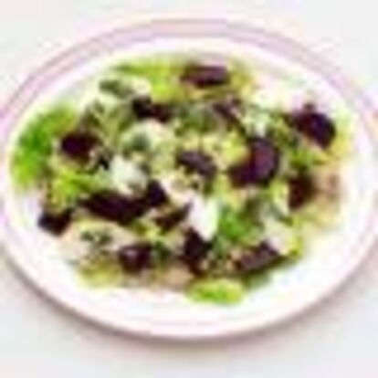 Las aromáticas frescas, la manzana ácida y la lechuga refrescan la combinación entre remolacha, nueces y quinua. El resultado es una ensalada completa y deliciosa.