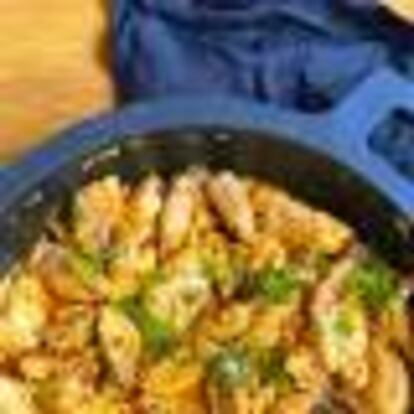 El contramuslo del pollo es tierno y jugoso, y cuando está deshuesado y troceado se cocina en cuestión de minutos. Con cuatro ingredientes más para darle sabor y aroma conseguiremos un plato de 10.