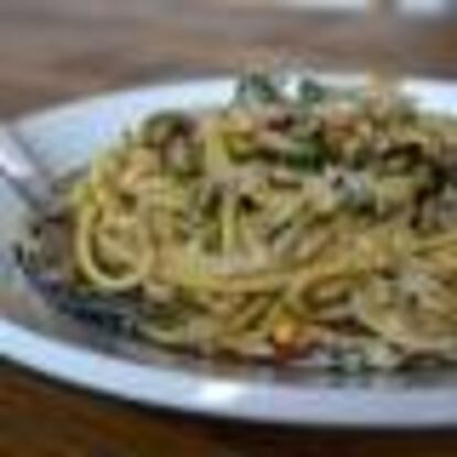 En las recetas de pasta mucho mejor contar con tres o cuatro ingredientes que congenien bien y sacarles el máximo partido que disimular la pasta con otros mil ingredientes. En este caso tiramos de sardinas y piñones y el resultado es una pasta fácil, rápida, barata y buenísima.
