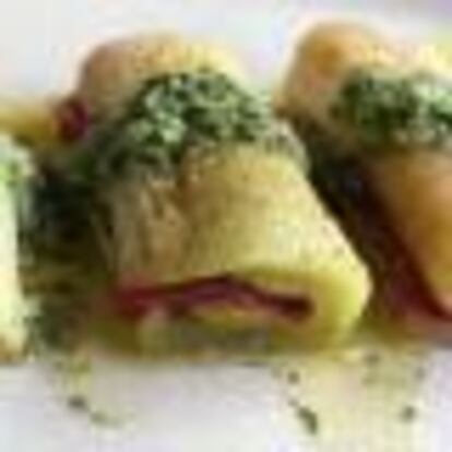 PUERROS RELLENOS DE CECINA CON VINAGRETA DE PESTO