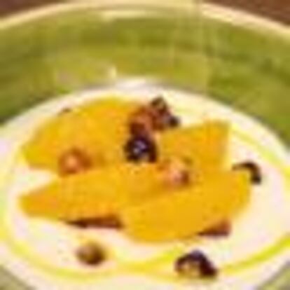 SOPA DE QUESO CON NARANJA Y AVELLANAS