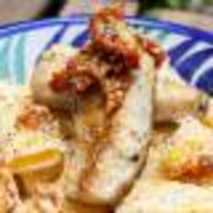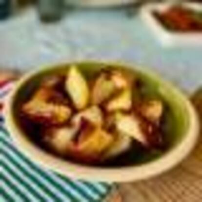 Este plato combina el amargor de la endivia con la intensidad del Idiazábal, el crujiente de las nueces y el toque de la miel picante. Y se puede servir como entrante o acompañando a un principal.