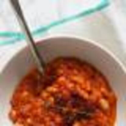 Las alubias guisadas con tomate ya son una delicia, pero si las animas con un toque de sobrasada de buena calidad se convierten directamente en un manjar. Las puedes tomar tal cual o coronadas con un huevo.