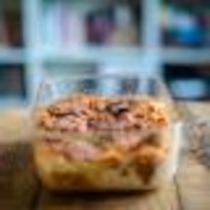 Este pudin no es bueno sólo está buenísimo, sino que también resulta de lo más económico: sirve para aprovechar restos de repostería seca que, de otra forma, acabarían en la basura.