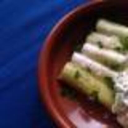 El verde lo pone una sencilla salsa de espinacas y perejil. El sabor, un caldo rápido de pescado, y el toque final, una caballa a la plancha. Invitados especiales: el limón, el puerro y el queso.