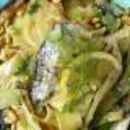 El hinojo cocinado tiene una textura melosa y un sabor ligeramente dulce, perfecto para combinarlo con otro más intenso como el de las sardinas en conserva. Un toque de mantequilla y limón remata la jugada.
