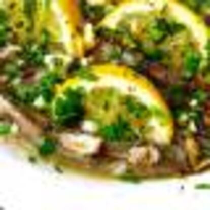 Un sencillísimo plato de pescado al horno, donde la bacaladilla puede ser sustituida por caballa, brótola, boga u otros, pero el aliño fresco de limón, aceite, ajo y perejil es innegociable.
