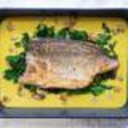 LUBINA CON CURRY, ESPINACAS Y BERBERECHOS
