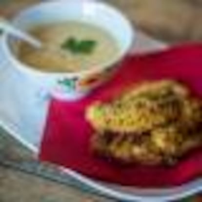 TIRAS DE POLLO ESPECIADO CON CREMA DE GARBANZOS