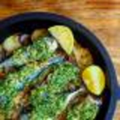 BOQUERONES ASADOS CON MOJO VERDE DE CILANTRO