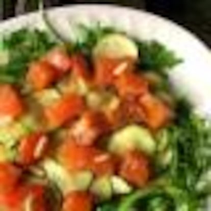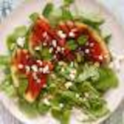 La fruta que reina en el verano se acerca a otra protagonista de la estación, la barbacoa, para terminar en una ensalada con queso y frutos secos. Si no tienes pensado hacer fuego, siempre puedes usar la plancha.