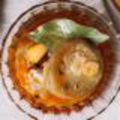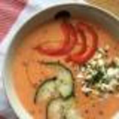 SOPA FRÍA DE MELOCOTÓN, ALBARICOQUE Y QUESO DE CABRA