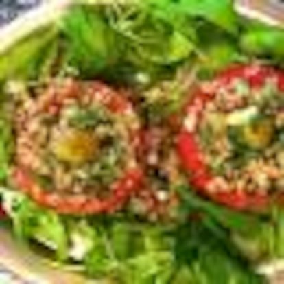 TOMATES RELLENOS DE QUINUA Y ENCURTIDOS