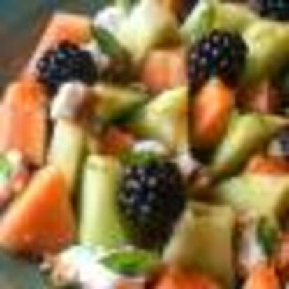 MACEDONIA DE MELÓN CON MORAS Y REQUESÓN