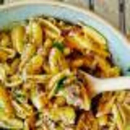 PASTA CON SARDINAS, ANCHOAS Y AJO ASADO EN SARTÉN