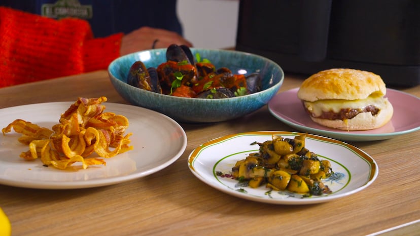 Si te has comprado o te han regalado una y no has salido aún de las patatas fritas y las alitas de pollo, deberías saber que en las airfryer se pueden preparar platillos inesperados. Una experta en este menester es Lola Martín, cocinera y dueña de Lola’s Brunch en El Prat de Llobregat (Barcelona): en su establecimiento sirve tapas a cascoporro elaboradas con este electrodoméstico. Martín nos enseñó sus trucos y cuatro recetas inesperadas: champiñones con hierbas aromáticas, torreznos, hamburguesas y mejillones en salsa marinera. Todo lo tienes en el vídeo de arriba.