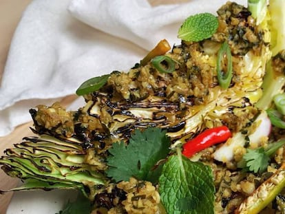 Inspirada en los libros del chef israelí Yottam Ottolenghi, esta ensalada tan alegre agradece un aliño un poco gamberro.
