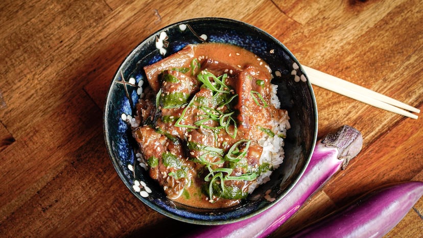 Dicha esta memez, vamos con la información: las berenjenas en adobo son un invento de Dr. Zhang, un restaurante de Barcelona especializado en dumplings pero que también sirve otros platos de cocina asiática. El adobo, que nació en Filipinas con ascendencia española -el país fue colonia hasta 1898-, se prepara habitualmente con pollo o cerdo, pero las responsables del Dr. Zhang le han dado una vuelta vegetariana con berenjenas chinas e incorporado ingredientes propios de ese país como la pimienta de Sichuan o el vinagre negro de arroz. Si quieres ver cómo lo preparan, mira el vídeo de arriba.