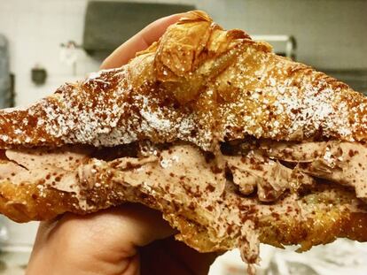Contigo empezó todo. En 2013, el francés Dominique Ansel creó un híbrido de cruasán y donut, lo puso a la venta en su pastelería de Nueva York, y el resto es historia (de terror). El bicho se volvió más viral que Baby Shark, todo quisque se apuntó a la fiesta, y aquello se convirtió en el eco de un chiste malo. Masas de cruasán sequísimas y fritas en aceite para moto. Glaseados, toppings y rellenos industriales. Volquetes de azúcar. “Es una bomba calórica. Por no decir que un hojaldrado frito se resiente mucho”, comenta Manu Jara. Aunque la moda ha perdido fuerza, el cronut sigue al acecho, y en todo este tiempo las redes no han parado de pedir más contenido, más tontería hojaldrada. Y no han dejado de trolear al cruasán. Como apunta Miquel Guarro, el cronut ha gozado de un marketing muy potente. “No obstante, teniendo algo tan rico como el chucho, para qué vamos a perder el tiempo con cosas raras”, concluye.