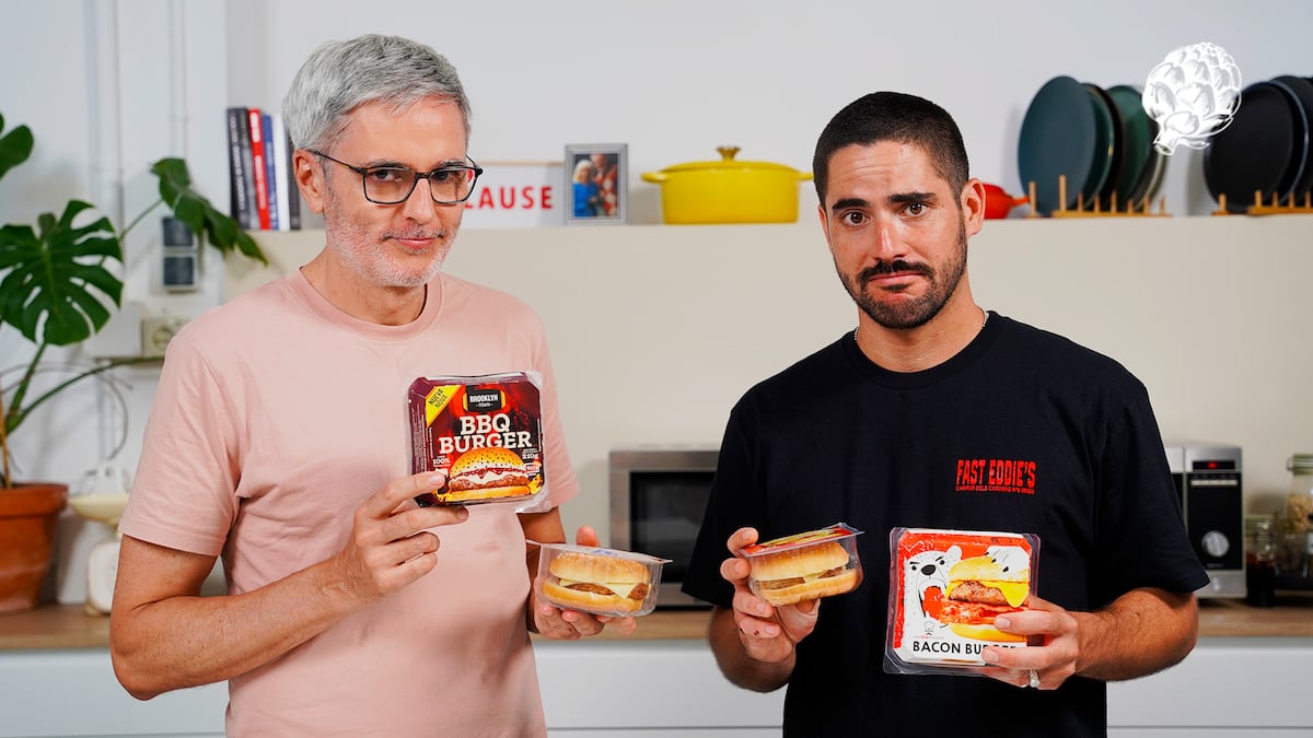El dudoso invento parece tener sus adeptos, porque supermercados como Mercadona, Lidl o Dia ya lo venden bajo sus respectivas marcas blancas. También hay versiones, ejem, premium, como la de Brooklyn Town, y alguna empresa española como Palacios se ha lanzado a producirlas. ¿Existe alguna que se salve o son todas un engendro? Para resolver el dilema hemos convocado a Edward White, de la hamburguesería Fast Eddie’s en Barcelona, y hemos probado con él seis variedades. Si quieres saber el resultado y hacer que nos salga a cuenta el gasto en Almax, por favor mira el vídeo de arriba.