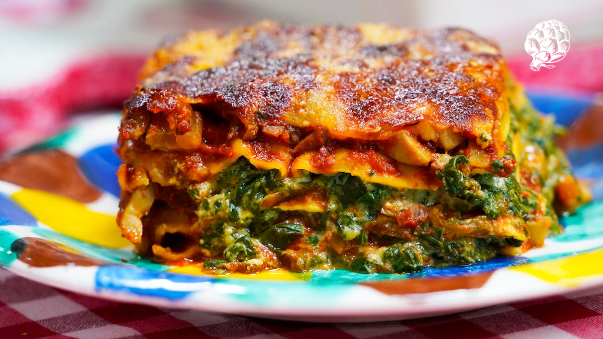 Esta lasaña tiene, además, la virtud de la sencillez. Por un lado lleva una simple salsa de tomate con setas, y por otro, una mezcla de ricota, espinacas y parmesano. No hace falta cocer previamente las láminas de pasta, y también pasamos de la bechamel, una salsa habitual en la lasaña que nos rechifla pero que nos complicaría la existencia y haría el plato más pesadote. Vamos, que son todo facilidades. Mira el vídeo de arriba para ver cómo se hace.