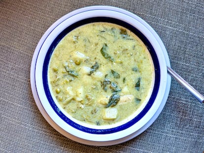 Si esos días los pasas comiendo platos calientes y reconfortantes que, al menos, alivien momentáneamente la sensación de tener la cabeza metida en una pecera, pues mejor. La sopa es una gran aliada, especialmente, porque en estas situaciones lo que no puede faltar es agua. Yo la hago con ajo y cebolla, un poco de cúrcuma, ralladura de limón, jengibre y anís estrellado. Le pongo una pechuga de pollo para que se cueza y aporte sabor al caldo, y termino con alguna verdura de hoja verde.
