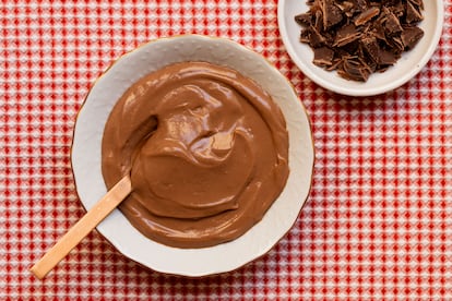 La primera variación no podía ser otra: añadirle chocolate, que puede ser negro, con leche o blanco. Para añadirle cualquiera de ellos y tener una crema pastelera de consistencia media –ni muy densa, ni muy ligera– es necesario aumentar la cantidad de leche de la receta clásica a 700 mililitros y disminuir el azúcar a 80 gramos si se trata de chocolate negro, y a 60 gramos si es con leche o blanco. La elaboración es exactamente la misma, lo único que debes hacer es añadir el chocolate picado muy fino a la crema pastelera inmediatamente después de apagar el fuego para que se funda con su propio calor.