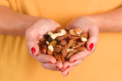 Iva Marques explica así las bondades de los frutos secos: “Nos aportan una cantidad importante de vitaminas, sobre todo, la E y las del grupo B, como la B1, o la B9 o ácido fólico. También fibra (de cuatro a cinco gramos por puñado); y grasas saludables, con una proporción diferente entre los Omega3 y 6, dependiendo de cada fruto seco; y muchos fitoquímicos con efecto antioxidante”. La fibra y las grasas son las reinas de la saciedad, así que a poco que comamos, vamos a sentirnos satisfechos y sin ganas de picotear en unas horas.