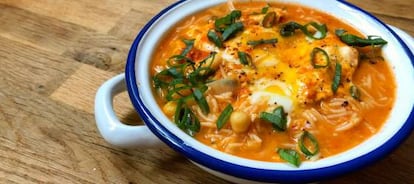 PRIMERO: SOPA DE TOMATE, HUEVO Y GARBANZOS