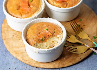 Grábate a fuego esta última frase: la base admite que se prepare con cierta antelación, pero las claras hay que montarlas al momento y cocer los suflés enseguida; la cosa requiere planificación y saber montar y mezclar adecuadamente unas claras de huevo.