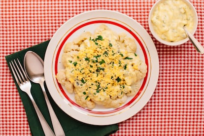 El capítulo de odiar la coliflor ya lo hemos pasado hace rato, es bien sabido en esta casa que cuando se cocina el tiempo justo y de la manera adecuada se convierte en un vegetal suave, dulce y listo para aceptar lo que quieras ponerle encima. Aquí es donde entra la gribiche, una salsa de origen francés que se elabora con yemas, pepinillos, alcaparras, claras cocidas, mostaza, aceite, vinagre y algunas hierbas. Tiene la cremosidad de una mayonesa y la capacidad de hacer con cualquier verdura un plato de diez. Conviene tenerla a mano para primeros y guarniciones en estas Navidades.