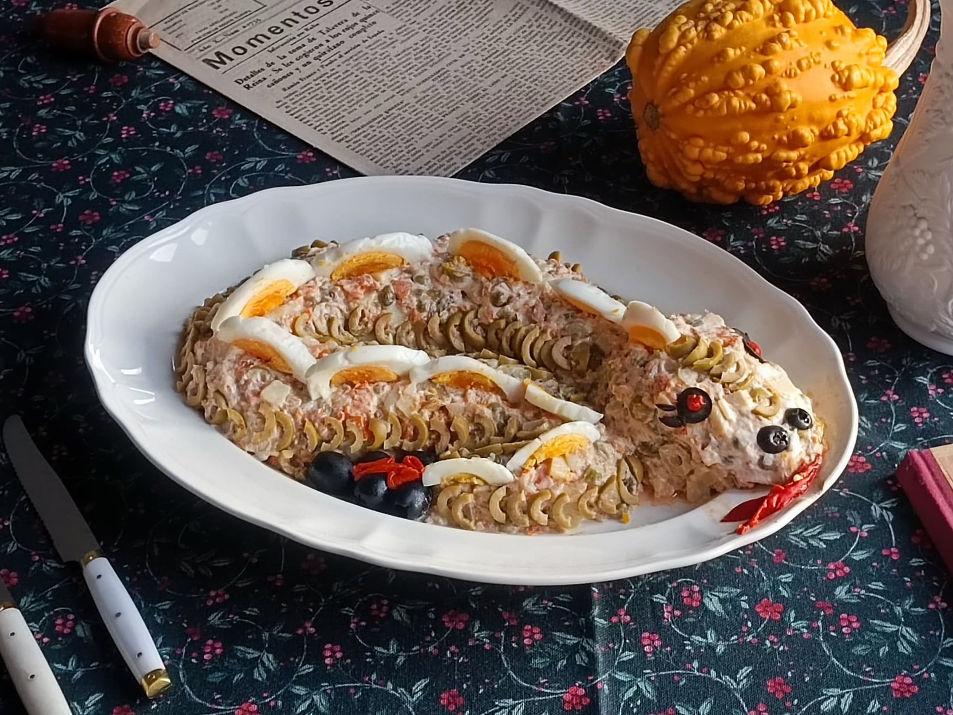 Beatriz Perezagua nos deleitó con otra criatura digna de La nave del misterio, aparecida en la decoración de su ensaladilla de este año. “La intención era hacer una mariposa”, asegura, “pero según mi pareja es el ángel exterminador del espacio”.