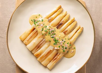 Espárragos blancos frescos con salsa de chalotas