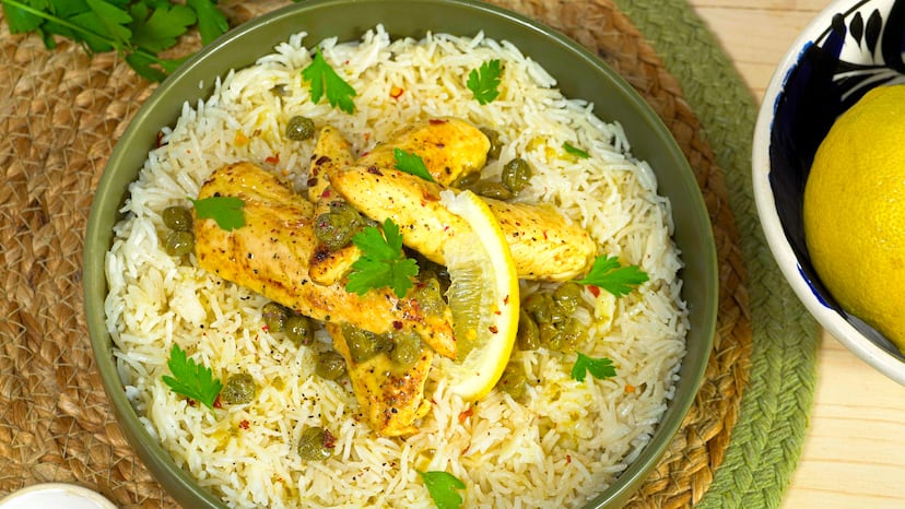 En nuestra receta de hoy utilizamos arroz Brillante de la variedad basmati, ideal para saltear sin que aparezca la temida pastosidad. Completamos el bowl con pollo marinado con miel y mostaza y un toque final en forma de salsa que mezcla el sabor lácteo de la mantequilla con la acidez del limón y las alcaparras. Si quieres aprender a elaborar esta receta en casa, dale al play en el vídeo de arriba.