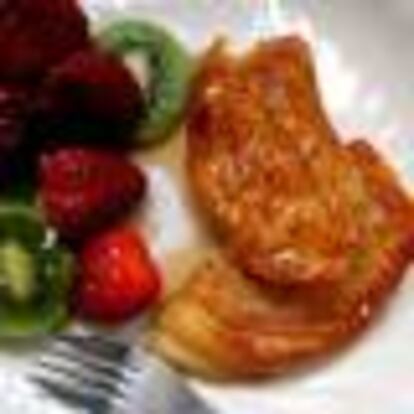 El pan mojado en leche azucarada y especiada adquiere superpoderes al pasarlo por la sartén con mantequilla, y el toque final del sirope termina de convertir esta bomba calórica en una irresistible maravilla.