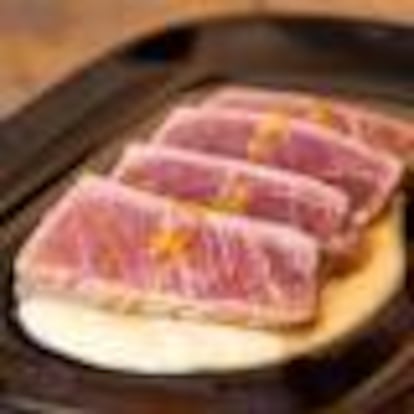Este pescado ultrafácil es un primer plato que podrás lucir también en ocasiones especiales. Consiste en una especie de tataki de atún con otra especie de hummus/salsa/crema de almendras. Para repetir.