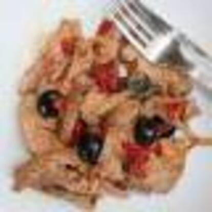 LOMO FRÍO CON ACEITUNAS NEGRAS Y PIMENTÓN