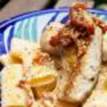 RIGATONI CON CABALLA Y AJOS CONFITADOS