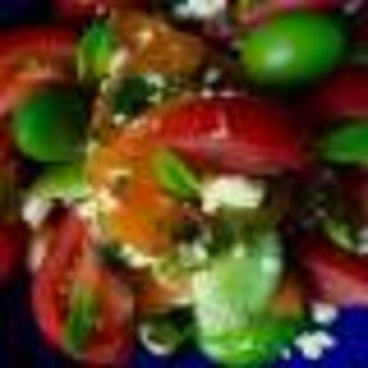 ENSALADA DE TOMATE, ALBARICOQUE, FETA Y VINAGRETA DE MENTA