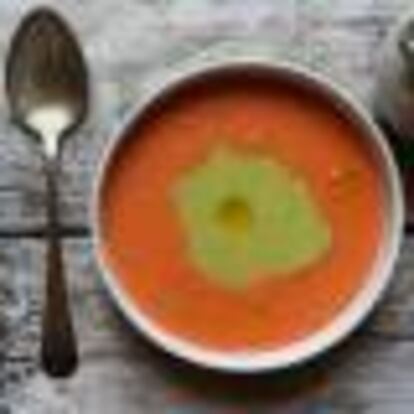 En esta sopa juntamos la dulzura del tomate rojo maduro con el toque ácido del verde. Más algunos aderezos para que todo suba.