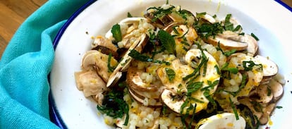 Champiñones con cuscús, limón y menta