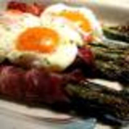 ESPÁRRAGOS TRIGUEROS CON JAMÓN Y HUEVO ESCALFADO