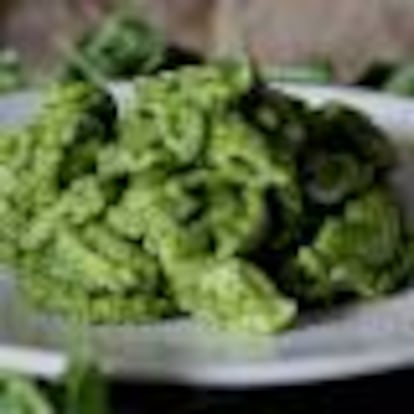 Recuperamos la olvidada mejorana para dar color y sabor a un pesto fresco y con un característico toque dulce. Una pasta corta y con textura.
