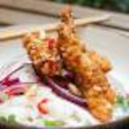 SOPA FRÍA DE COCO, LIMA Y POLLO CRUJIENTE