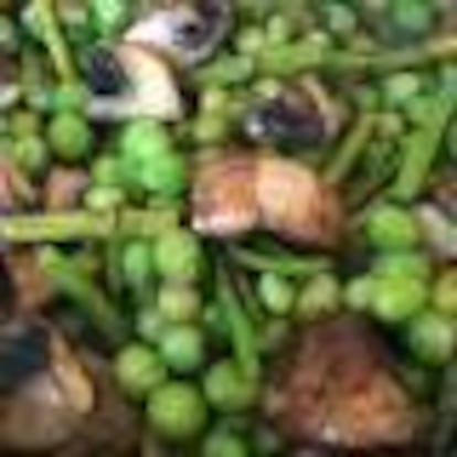 SARTÉN DE GUISANTES, TRIGUEROS Y CHAMPIÑONES