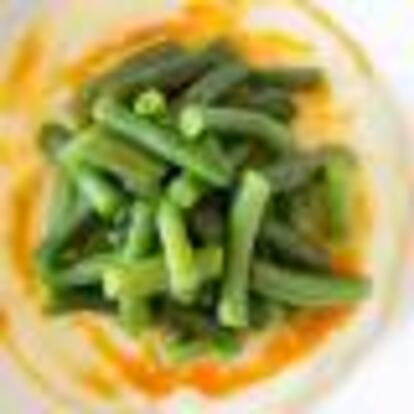Una vuelta cremosa a las judías con patatas y refrito de ajo de toda la vida. No es obligatorio ponerles un huevo frito o escalfado por encima, pero sí bastante recomendable.