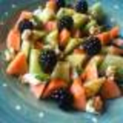 MACEDONIA DE MELÓN CON MORAS Y REQUESÓN