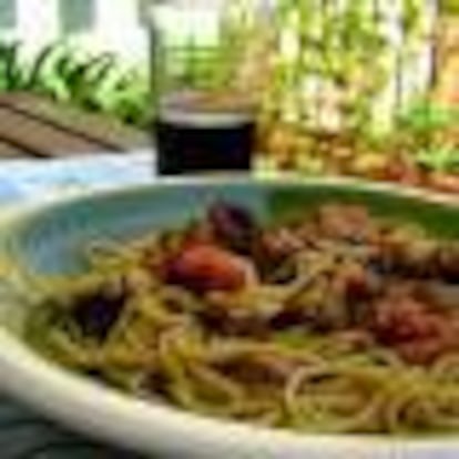 ESPAGUETIS CON PEZ ESPADA Y BERENJENA