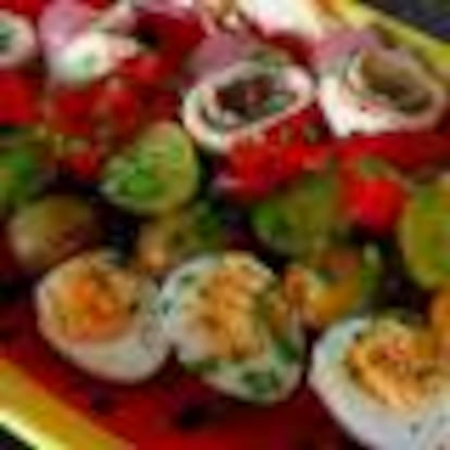 BANDERILLA DE BOQUERÓN, PIMIENTO Y HUEVO DE CODORNIZ